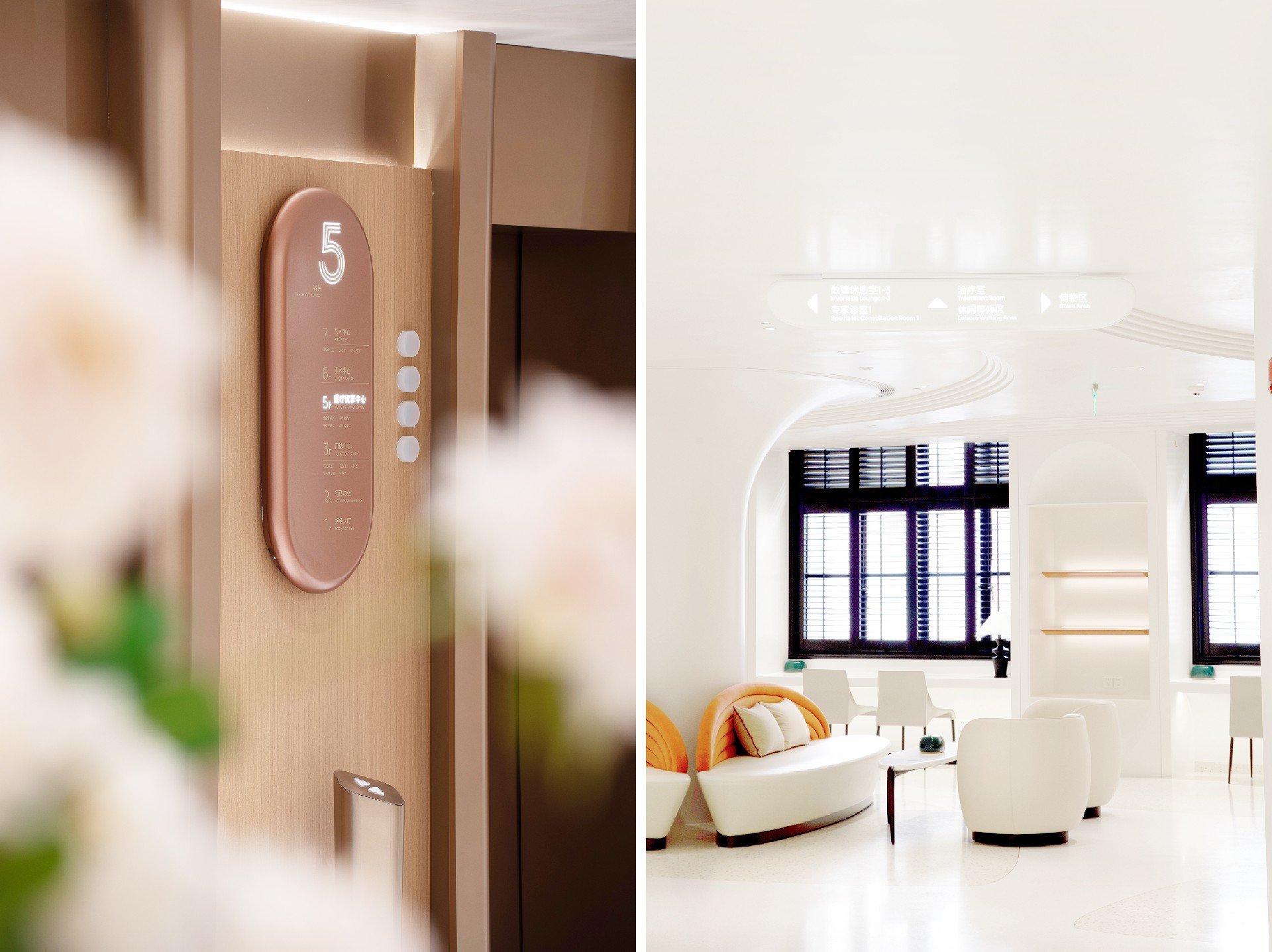 在導(dǎo)視設(shè)計(jì)上,為了使患者從空間環(huán)境各個(gè)觸點(diǎn)上感受新瞳的醫(yī)療初心和價(jià)值傳遞,坐落于上海外灘的歷史保護(hù)建筑滇池路81號(hào),就是新的創(chuàng)意挑戰(zhàn)地。為了讓導(dǎo)視在一個(gè)法式空間中不突兀的傳遞溫暖,多更品牌和新瞳團(tuán)隊(duì)在討論過(guò)后依然選擇了品質(zhì)和內(nèi)斂的方向作為導(dǎo)視的主旨思路,它需要在環(huán)境中充分的融合,不突兀不張揚(yáng),圓潤(rùn)親和而又大方的呈現(xiàn)一致性,同時(shí)兼顧每層樓不同的調(diào)性,比如醫(yī)療區(qū)要足夠?qū)I(yè),員工區(qū)要相對(duì)活力。
