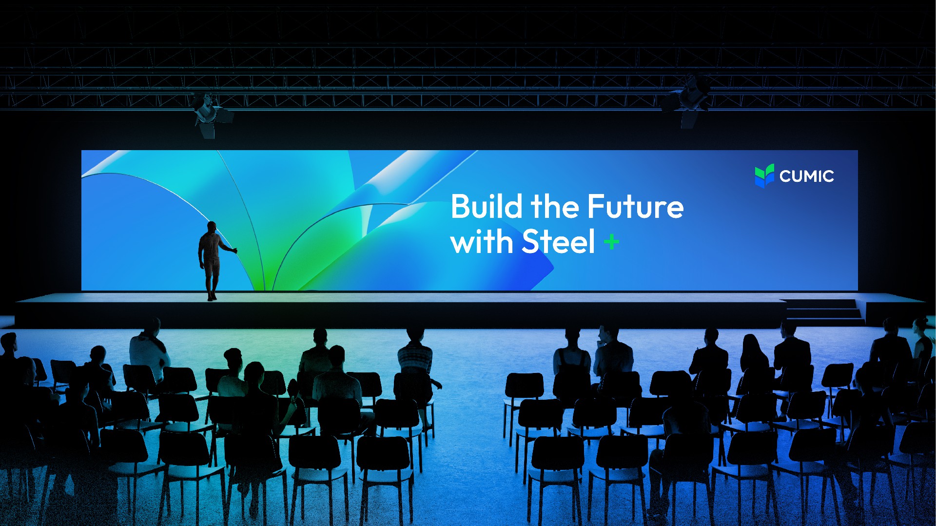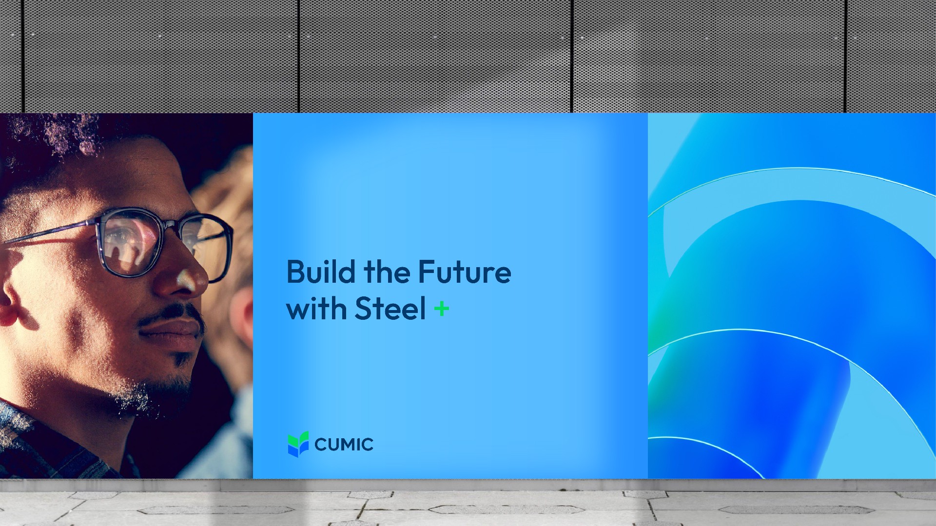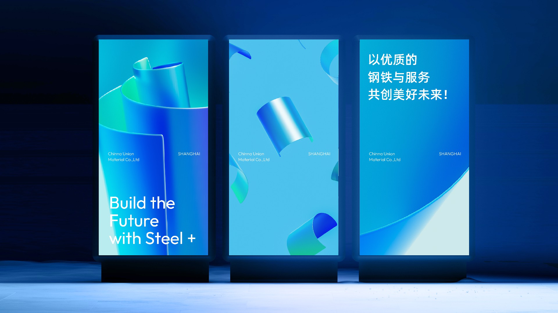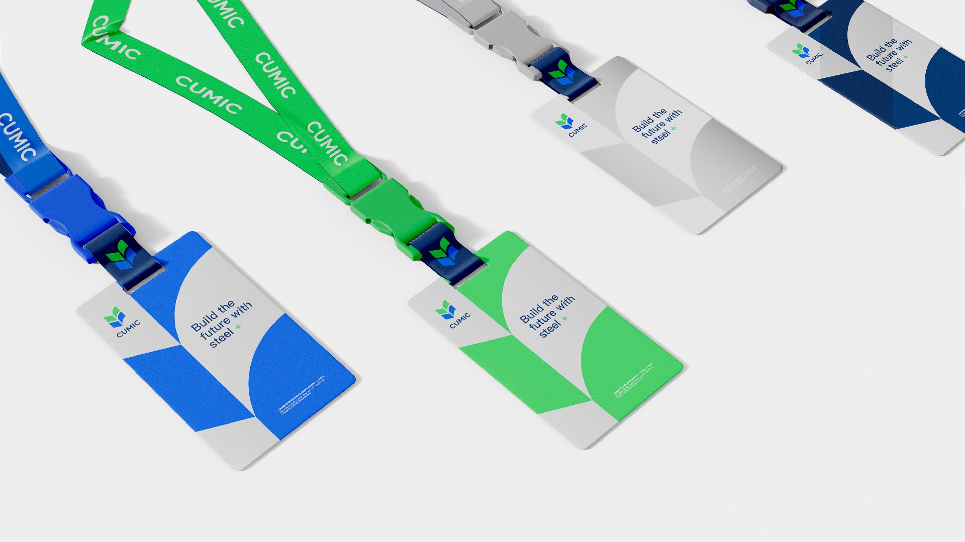 我們使用綠色和藍(lán)色,代表鋼鐵和生態(tài)的結(jié)合,用兩個“V”的疊加,持續(xù)訴說CUMIC的價值進(jìn)化,用四個圖形的匯聚鋼鐵服務(wù)供應(yīng)鏈