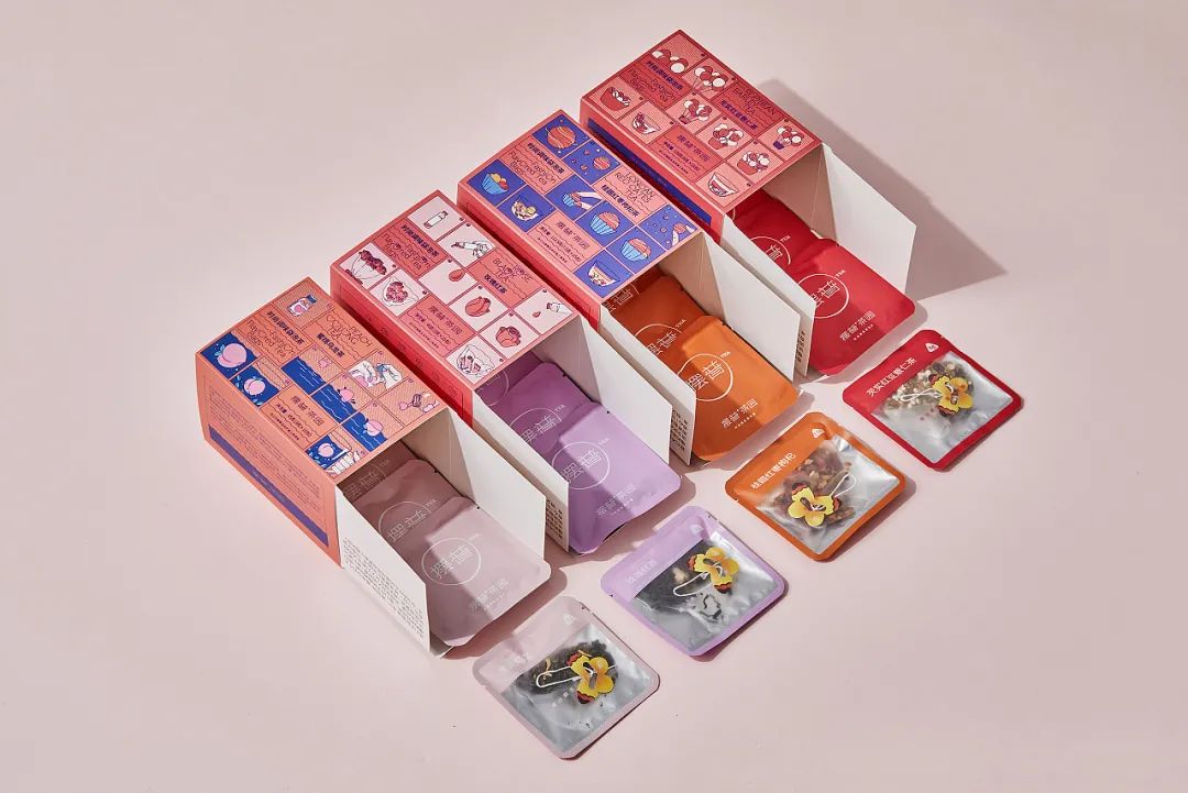 下面再分享一組更具現(xiàn)代特色的花茶包裝設(shè)計。